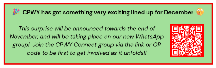 Following the results of the recent poll we ran within our CPWY Connect group on Telegram, we are now transitioning this social networking group from Telegram to WhatsApp which reflects the majority choice. Thank you to all those who have engaged with our CPWY Connect group on Telegram.